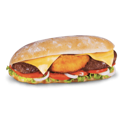 2steak 45g, galette de pomme de terre, cheddar, salade, tomate, oignon