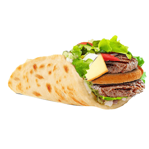 2steak 45g, galette de pomme de terre, cheddar, salade, tomate, oignon